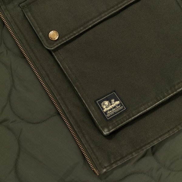 Side A: Washed cotton canvas with two snap-closure hip pockets